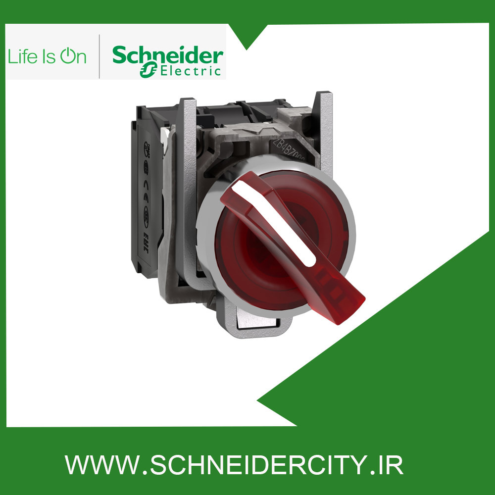 سلکتور سوئیچ فلزی قرمز دوحالته با ولتاژ 230تا240 ولتAC اشنایدر XB4BK124M5