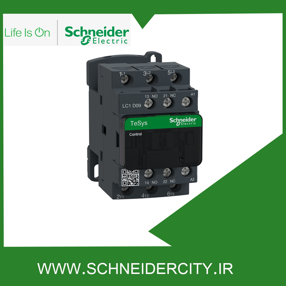 کنتاکتور 9 آمپر LC1D09E7 اشنایدر به منظور کنترل بار عمومی و موتور مورد استفاده قرار می گیرد. این کنتاکتور از نوع سه پل بوده و سه کنتاکت با قدرت NO دارد که ترکیب آن ها به صورت 1NO + 1NC است. جریان کاری این قطعه 9 آمپر و ولتاژ تغذیه بوبین یا ولتاژ کنترلی آن 48 ولت AC است.