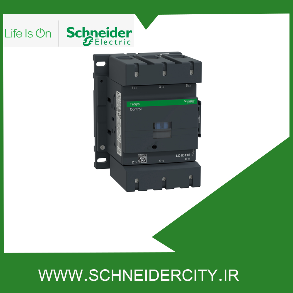کنتاکتور 115 آمپر 220VAC اشنایدر برای مدار قدرت و در حالت DC رنج ولتاژ عملکردی آن برابر با ۳۰۰ ولت بوده و در حالت AC برابر با ۶۹۰ ولت در رنج فرکانسی ۲۵ تا ۴۰۰ هرتز است. این قطعه روی ریل و صفحه نصب می شود و اتلاف حرارتی آن در فرکانس ۵۰ / ۶۰ هرتز معادل 3_2 وات است و در برابر لرزش و شوک، مقاومت بالایی از خود نشان می دهد.