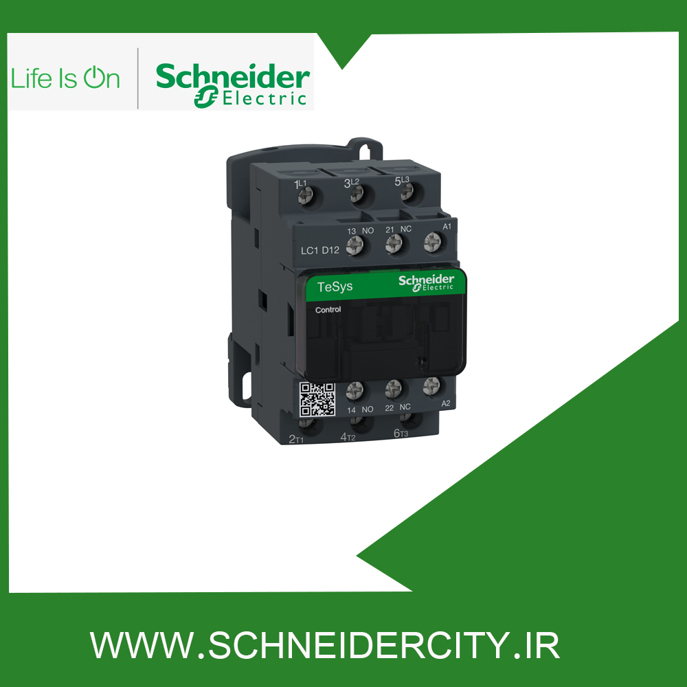 کنتاکتور 12 آمپر LC1D12M7 اشنایدر به منظور کنترل بار عمومی و موتور مورد استفاده قرار می‌ گیرد. این کنتاکتور از نوع سه پل بوده و سه کنتاکت با قدرت NO دارد که ترکیب آن ها به صورت 1NO + 1NC است. جریان کاری این قطعه 12 آمپر و ولتاژ تغذیه بوبین یا ولتاژ کنترلی آن ۲۲۰ ولت AC است.