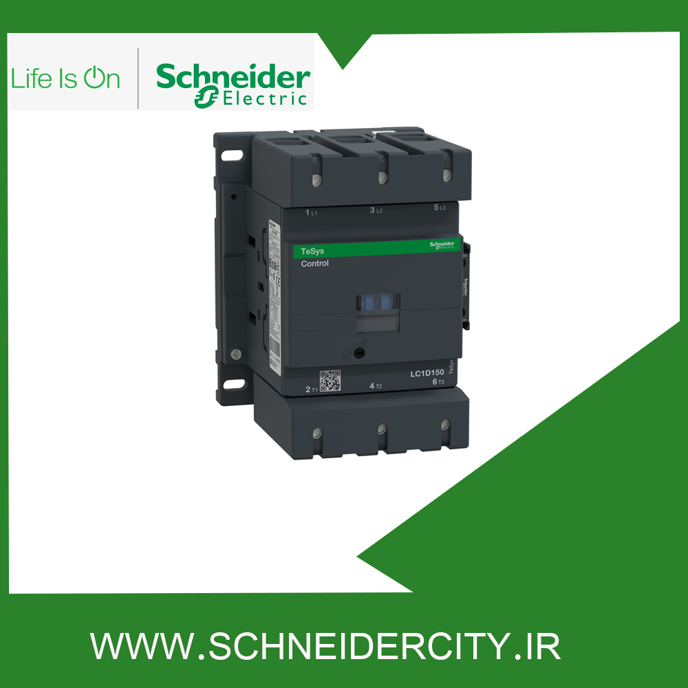 کنتاکتور 150 آمپر LC1D150M7 اشنایدر به منظور کنترل بار عمومی و موتور مورد استفاده قرار می‌ گیرد. این کنتاکتور از نوع سه پل بوده و سه کنتاکت با قدرت NO دارد که ترکیب آن ها به صورت 1NO + 1NC است. جریان کاری این قطعه 150 آمپر و ولتاژ تغذیه بوبین یا ولتاژ کنترلی آن ۲۲۰ ولت AC است.