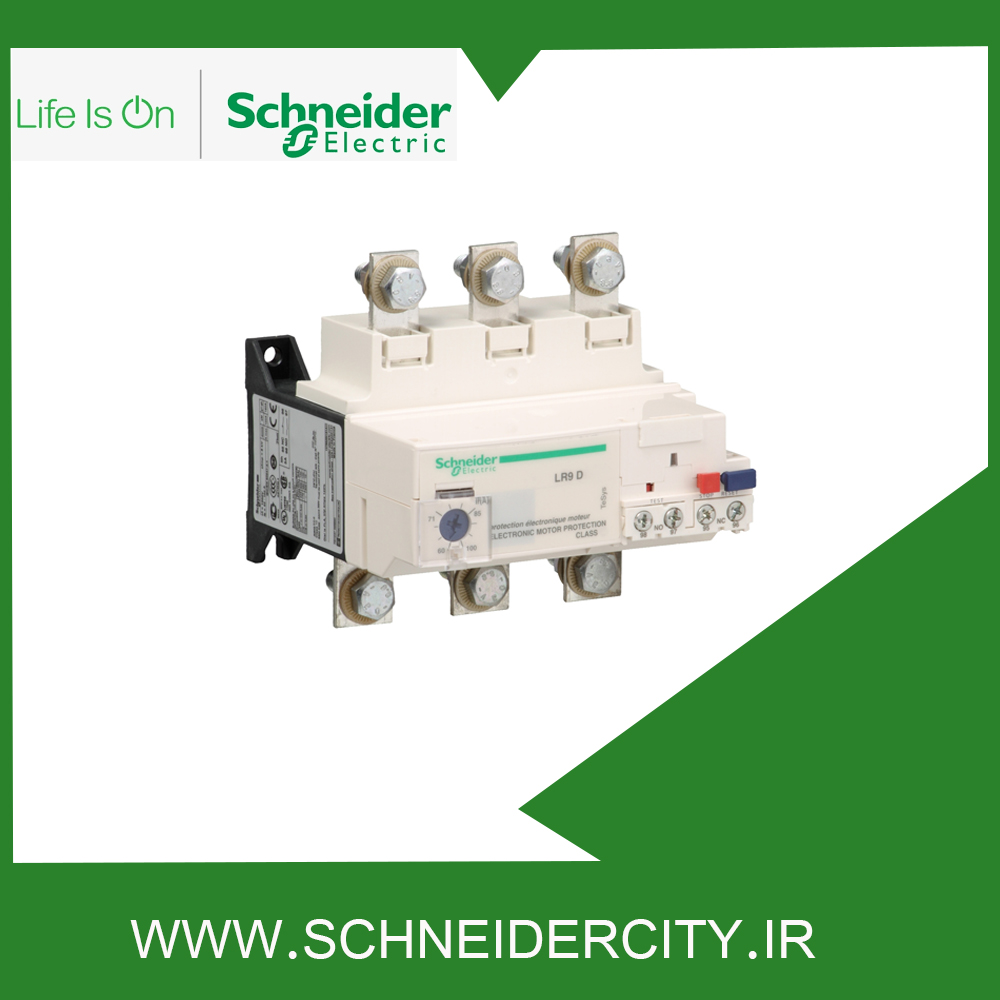 LR9D5367 اشنایدر در محدوده تنظیم جریان حرارتی 60 تا 100 آمپر از موتورهای ۳۷ تا ۴۵ کیلووات ۴۰۰ ولت محافظت می کند. این وسیله به طور مستقیم زیر کنتاکتورهای سه پل نصب می شود و موتورهای سه فاز و تک فاز را در برابر اضافه بار حرارتی به خوبی حفظ می کند.