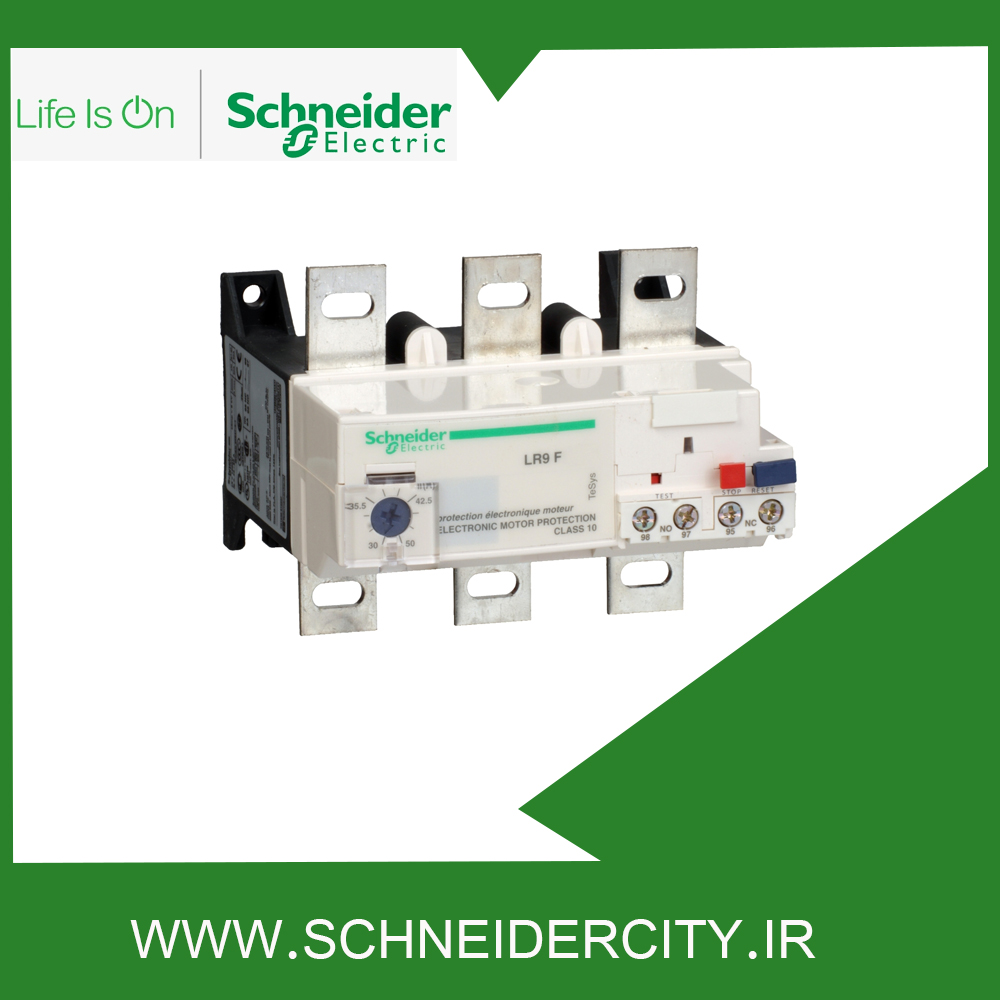 LR9F5369 اشنایدر در محدوده تنظیم جریان حرارتی 90 تا 150 آمپر از موتورهای ۳۷ تا ۴۵ کیلووات ۴۰۰ ولت محافظت می‌ کند. این وسیله به طور مستقیم زیر کنتاکتورهای سه پل نصب می ‌شود و موتورهای سه فاز و تک فاز را در برابر اضافه بار حرارتی به خوبی حفظ می ‌کند.