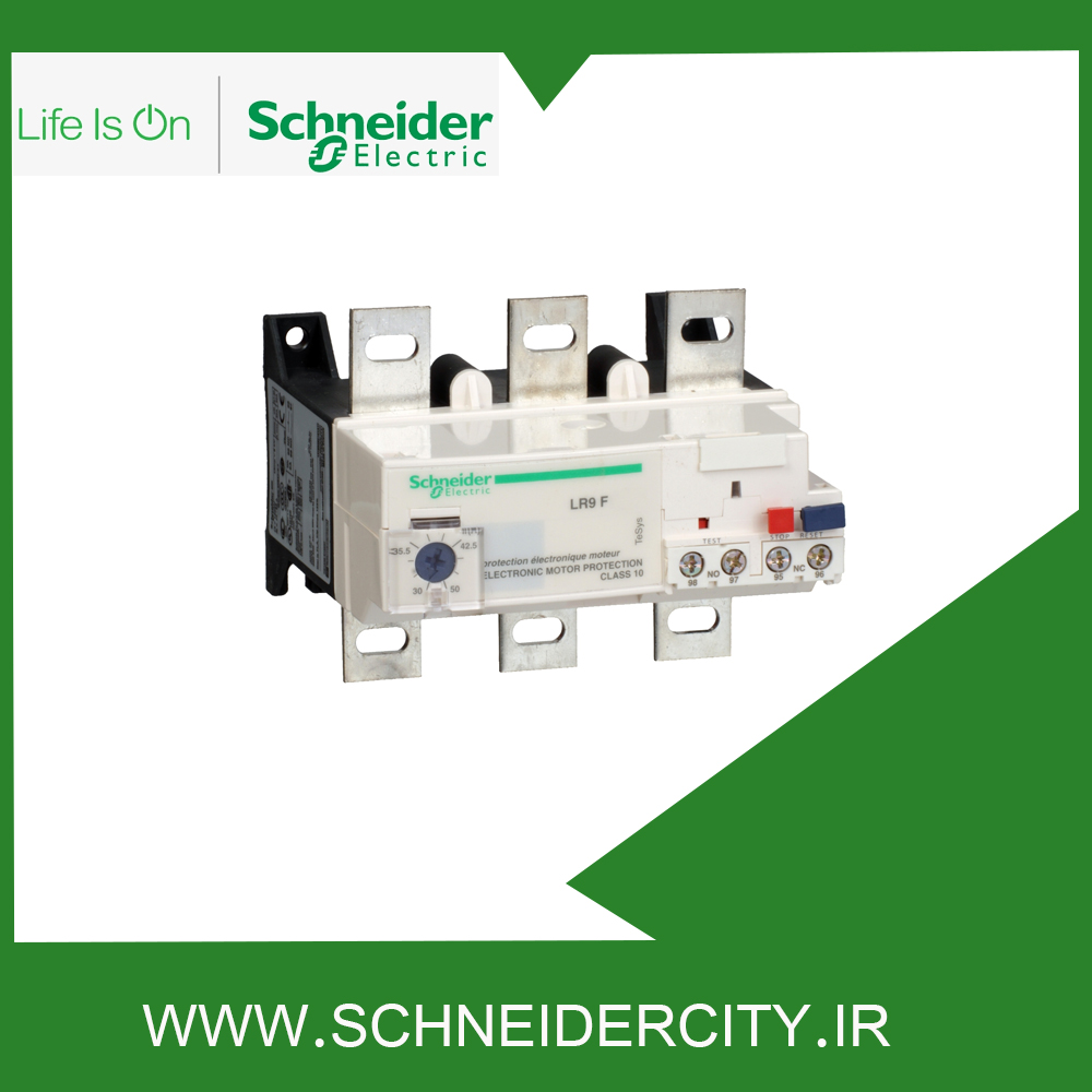 LR9F5371 اشنایدر در محدوده تنظیم جریان حرارتی 132 تا 220 آمپر از موتورهای ۳۷ تا ۴۵ کیلووات ۴۰۰ ولت محافظت می کند. این وسیله به طور مستقیم زیر کنتاکتورهای سه پل نصب می شود و موتورهای سه فاز و تک فاز را در برابر اضافه بار حرارتی به خوبی حفظ می کند.